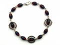 Náramek je vyrobený z českých broušených skleněných korálků modro-červené tmavé barvy. Na třech místech jsou korálky doplněné ozdobnými bižuterními komponenty.