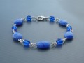 Náramek je tvořený z třídavě pospojovaných modrých žíhaných skleněných oválků a modrých broušených skleněných korálků.