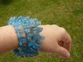 Velké modré žíhané skleněné korálky jsou podle vlastního návrhu navlečeny na čtyřech řadách paměťového drátku (= i přes velké roztažení se náramek vrátí do původního tvaru).