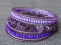 Vyroben výhradně z českých skleněných korálků a ametystu v provedení přírodní polodrahokam. Na nerezovém paměťovém drátu (9 otoček). Kombinace korálků různých tvarů a velikostí.