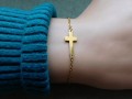 Jednoduchý jemný nerezový řetízek-náramek na ruku.....zlatá nerezová ocel......křížek