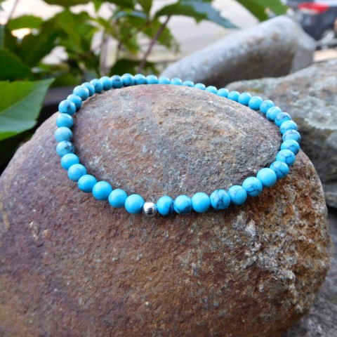 Jednoduchý jemný náramek z krásného rekonstruovaného tyrkysu a nerezové kuličky.....