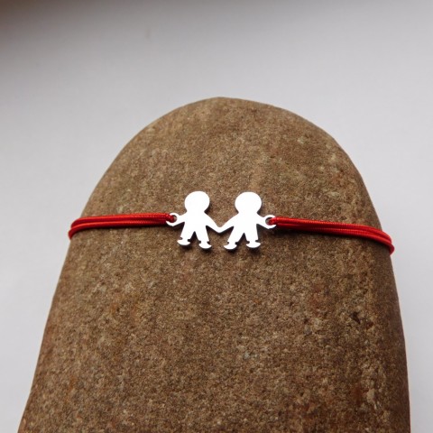 Červený náramek , přívěšek jsou nerezové postavičky, ------------