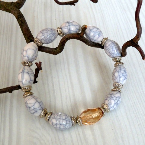 Pohodový náramek z keramických korálků v bílé až slonovinové barvě