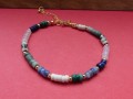 Pěkný jednoduchý náramek vyrobený z několika druhů polodrahokamů, nerez pozlacenými kuličkami....