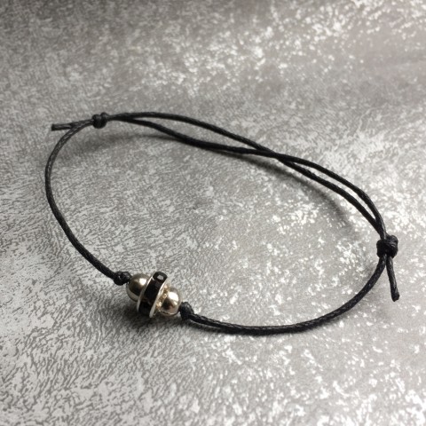 Kabbalah náramek z voskované šňůrky s kovovými kuličkami a šatonovou rondelkou. Univerzální velikost - dá se nastavit díky posuvným uzlíkům. Vhodný na dámské zápěstí.