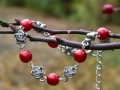Náramek z červených voskových perel a kovových starostříbrných růžiček