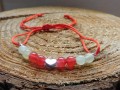 Jednoduchý, ale výrazný náramek ze saténové stužky a žlutého a červeného jadeitu a nerezového srdíčka..