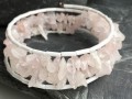 Náramek z paměťového drátu, bílých skleněných tyčinek a zlomků růženínu - 4 otočky, šířka 2 cm, průměr 6 cm.