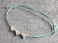 Světle modrý náramek z voskované šňůrky s třemi drobnými postříbřenými srdíčky. Univerzální velikost - dá se nastavit díky posuvným uzlíkům. Vhodný na dámské zápěstí.