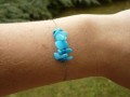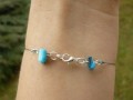 Náramek je vyrobený z tyrkysových perleťových zlomků, které jsou umístěné uprostřed tyrkysového bižuterního lanka, a po jednom z každé strany zapínání.