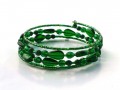 Zelené skleněné korálky různých velikostí jsou podle vlastního návrhu navlečeny na čtyřech řadách paměťového drátku (= i přes velké roztažení se náramek vrátí do původního tvaru).