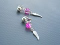 Růžovo-čirý korálek s ozdobnou vnitřní popraskanou strukturou a přívěsek v podobě andělského křídla jsou zavěšeny na klipsovém zapínání - na toto zapínání není potřeba mít propíchnutá ouška. V případě zájmu přendám na zapínání pro propíchnutá ouška.