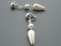 Náušnice jsou tvořeny čirým broušeným skleněným korálkem a bílými voskovanými perličky, přičemž spodní je v podobě obrácené velké kapky.