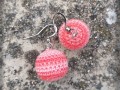 Lehoučké náušničky z dřevených korálků, obháčkované duhovou přízí