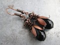 Náušnice jsou vyrobeny z černých skleněných korálků ve tvaru kapek, které jsou doplněny o černé broušené ohňovky a různé druhy kaplíků.