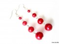 Dlouhé náušnice z 4 různých velikostí korálků - od nejmenší po největší - barva červená, délka včetně háčku 7,2cm
