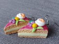 Náušnice ručně modelované z polymerové hmoty, kovové komponenty z nerezové oceli. V balení naleznete i 2 ks silikonových zarážek. Samotné dortíky jsou velké cca 3 x 2 cm. Celková délka náušnic je pak přibližně 5 cm. A protože to už je pořádný kus dortu, s dětskými oušky se tentokrát moc kamarádit nebude.