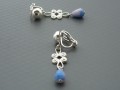 Lehké a krátké klipsové náušnice, na které není potřeba mít propíchnutá ouška, jsou tvořeny horním ozdobným bižuterním komponentem stříbrné barvy a spodní skleněnou kapkou v modro-lila barevné provedení.