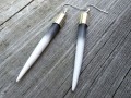 Ručně vyráběné náušnice z FIMO-hmoty. Dodávám se zarážkami proti ztrátě. Délka od začátku kaplíku po špičku je 6 cm.