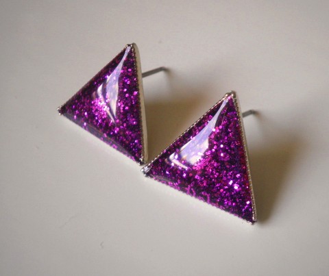 Náušnice puzety trojúhelníčky zalité křišťálovou pryskyřicí s glitry.