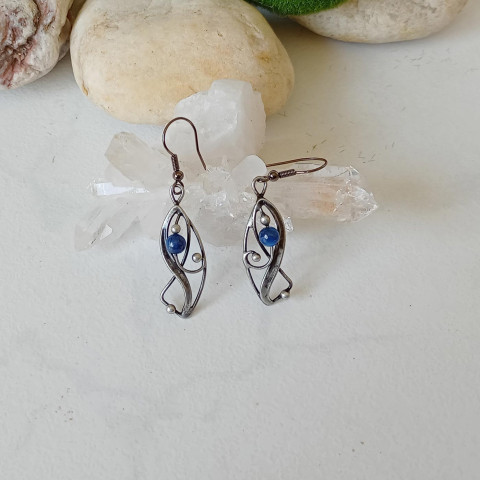 Zhotoveny z bezolovnatého cínu se stříbrem, kuliček kyanitu a drátu.
