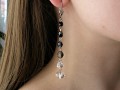 Módní dlouhé ketlované náušničky ze skl. korálků v odstínech čiré, kouřové až černé barvě. Bižuterní kov stříbro.