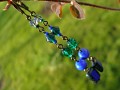 Módní dlouhé ketlované náušničky ze skl. korálků v odstínech modré (nivea), a lahvově zelené barvě. Bižuterní kov staromosaz.