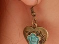 Náušnice ve tvaru srdce s tyrkysovou kyti.
