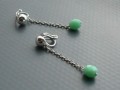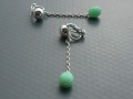 Náušnice jsou tvořeny z řetízku stříbrné barvy, na kterém je zavěšen mentolově zelený skleněný broušený korálek.