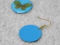 Větší náušnice s motýlem v kombinaci modré, žlutozelené a okrové.
