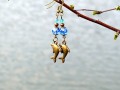 Tvoří je broušené ohňovky v modré a zelenomodré barvě zdobené kapíky, bronzová kulička a přívěsek delfína