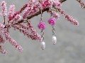 Růžička má růžovofialovou barvu a je pod ní zavěšen řetízek zakončený perlovou rýží