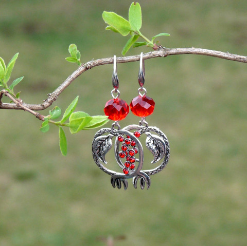 Visací náušnice s kouzelným přívěskem granátového jablíčka