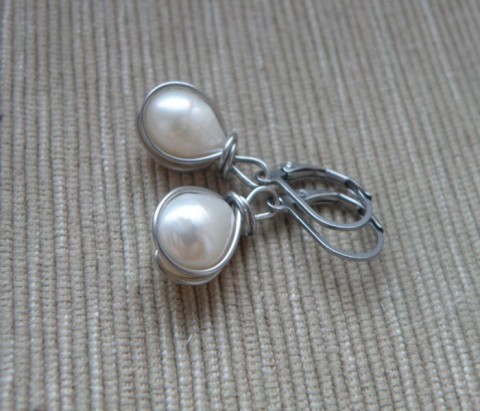 Naušnice z chirurgické oceli - s kapkami říčních perlí - délka naušnic je 3 cm i s háčky.