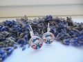 Náušnice - skleněný kabošon, zapínání. Veselý motiv pro holčičky.