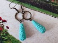 Náušnice s vyřezávaným a dobarvovaným houbovým KORÁLEM do tyrkysové barvy