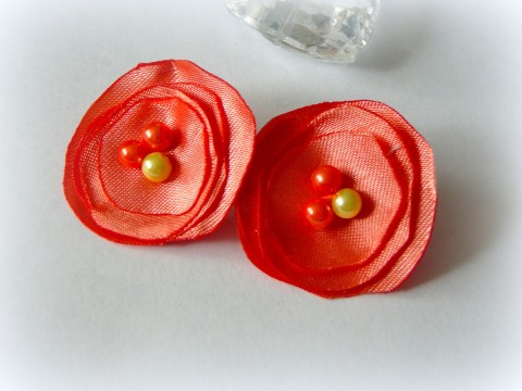 Saténové květy do oušek,velmi jemný šperk pro romantické dámy.
