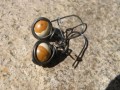 Naušnice měděné - uvnitř jsou malé kuličky obrázkového jaspisu, 8 mm, které jsou zasazené v měděném poudře. Háčky jsou z patinované chirurgické oceli.....
