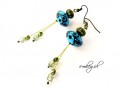Elegatní náušnice v modrozelných barvách z vinutek, mačkanách perlí, ohňovek a lanka.
