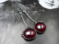 Cínované drobné náušnice na stopce, tmavě červené výrazné sklo, 1 cm ... Délka 4 cm i s afroháčkem.