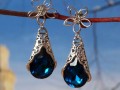 Visací náušnice s dominantním velkým přívěskem s broušeným kamenem ve tvaru slzy v modré barvě