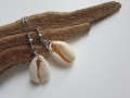 Náušnice jsou vytvořeny z háčků z chirurgické ocele v barvě platiny a z komponetů z nereové ocele (vhodné pro alergiky), z přírodních kauri mušliček v barvě slonové kosti s hnědavo oranžovými tóny.