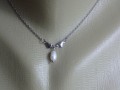 Dvě malá srdíčka z nerezu , bílá malá perlička zavěšená uprostřed.