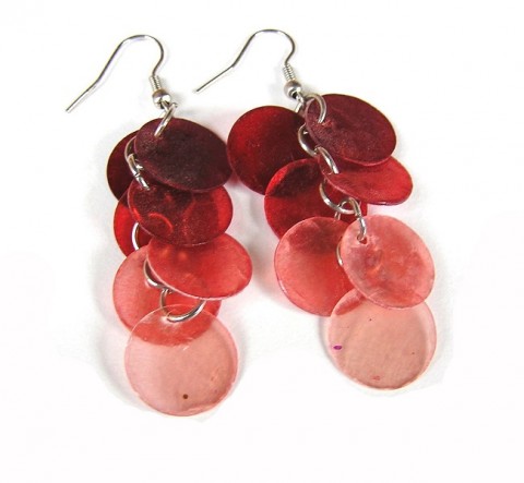Střapečkové náušnice z perleťových penízků v barvách od červené po růžovou. Zavěšeny jsou na afroháčcích - dodávám s pojistkami.