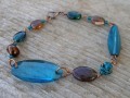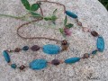 Výrazné dlouhé náušnice v barvách petrol, měděné a hnědé.