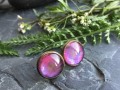 Náušnice - puzetky v barvě mosazi, běžný kov s dobarveným skleněným kabošonem.