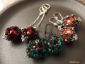 Pozn.: na ilustračním fotu jsou delší háčky, než jsou použity na těchto náušnicích, motiv je ale stejný. Červená i zelená barva působí chladným dojmem.