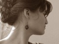 Uvnitř je schovaná voskovaná perlička černé barvy. Doplněno o ozdobné kaplíky a menší černý korálek.