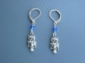 Nejen dětské náušnice z horního modrého broušeného skleněného korálku a spodního kovového přívěšku v podobě sovičky.
